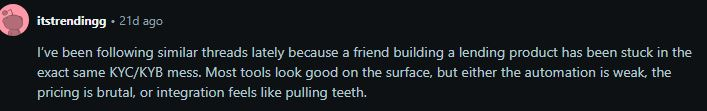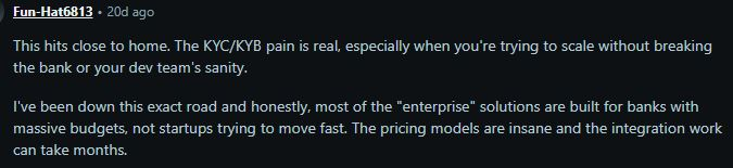 Another challenge is integrating fraud detection with multiple payment providers and KYC tools. Many founders on Reddit have complained about how complex and slow this process can be, sometimes dragging on for months. During this delay, your platform remains exposed to fraud.